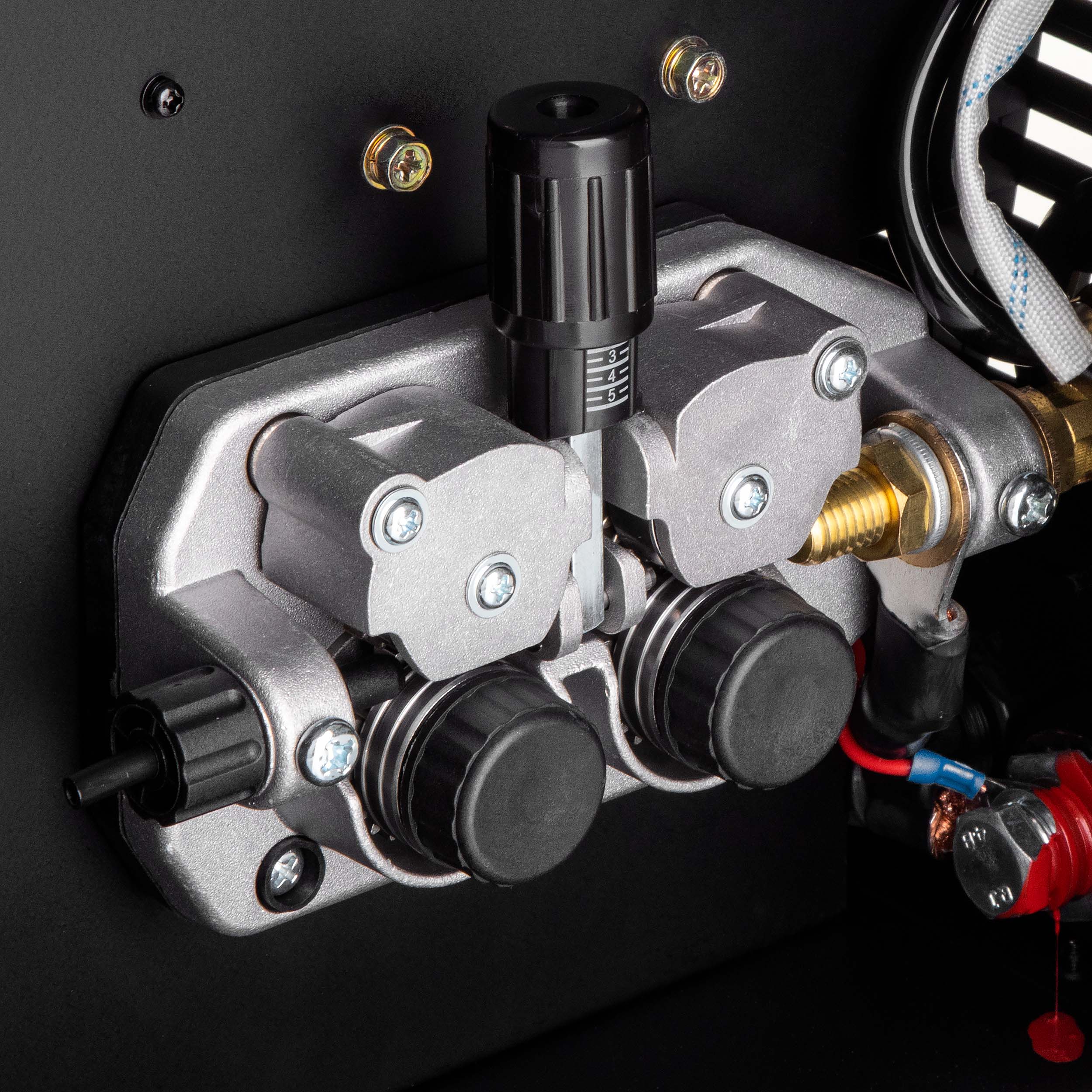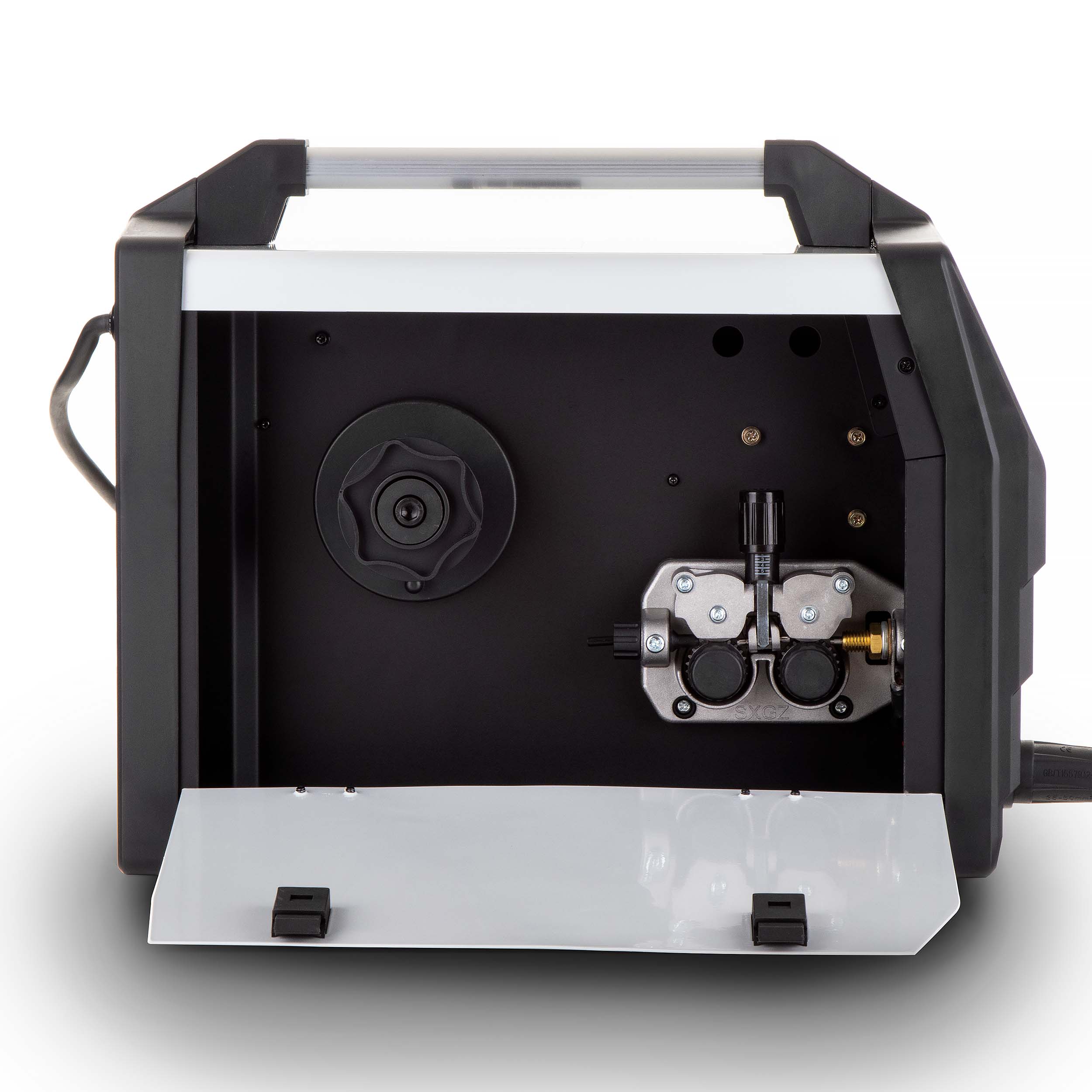- 4-rolkowy podajnik drutu zapewniający płynny transfer spoiwa.