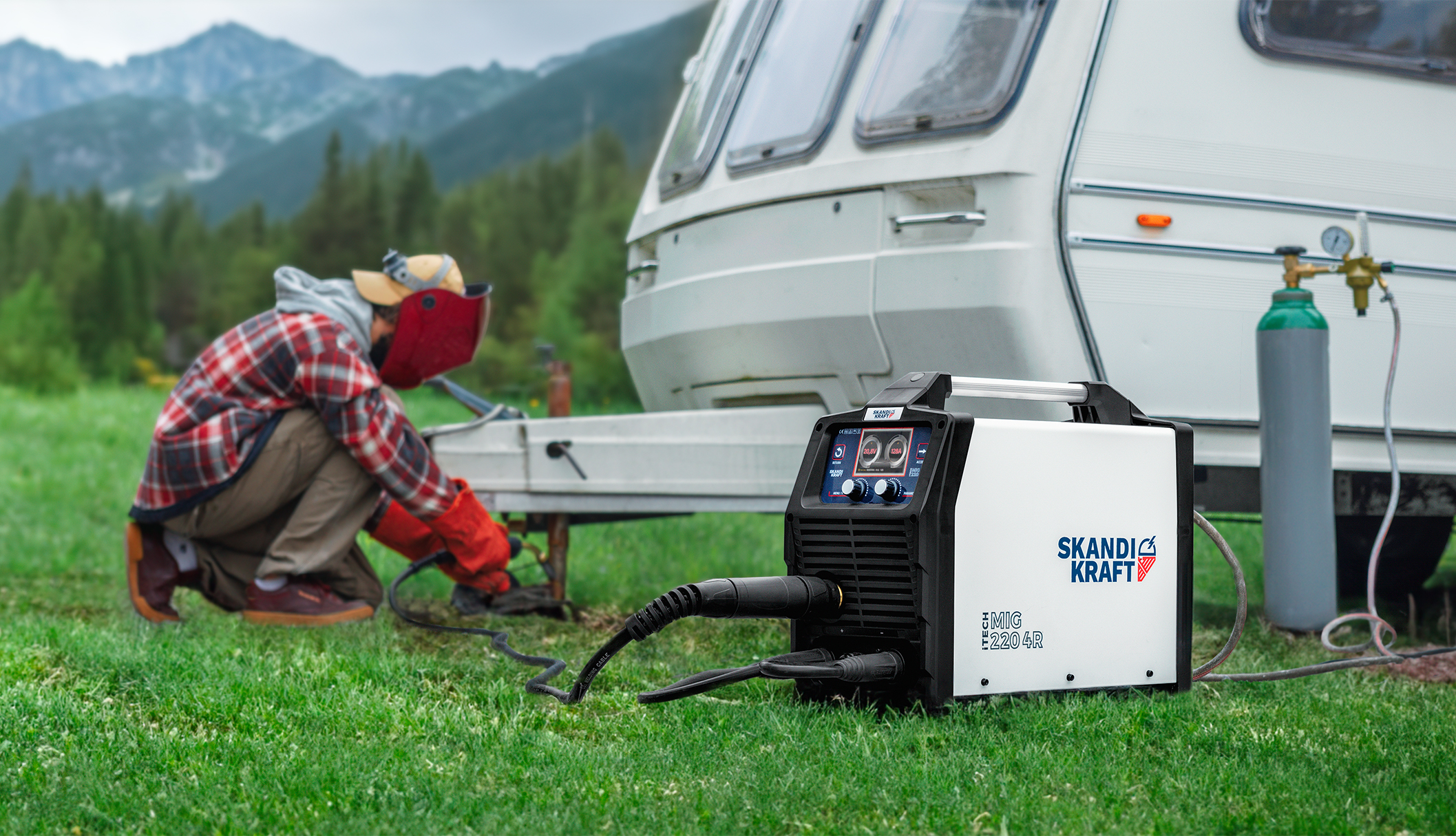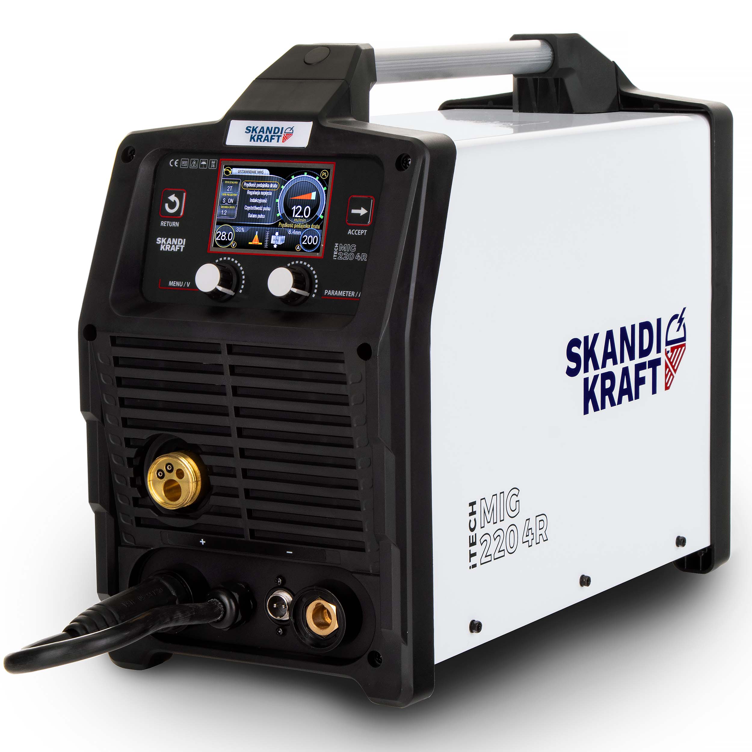 - Spawarka SKANDI KRAFT iTECH MIG 220 4R z zintegrowanym kablem zasilającym o długości 3 metrów i przekroju 3x2.5 [mm2],