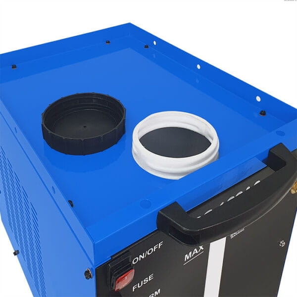 Chłodnica WRC 600A2 ALARM to w pełni profesjonalne urządzenie przeznaczone do chłodzenia cieczą uchwytów spawalniczych MIG/MAG i TIG oraz innych podzespołów i urządzeń wymagających chłodzenia w obiegu zamkniętym. Model WRC 600A2 ALARM dzięki dużej zdolności chłodzenia jest szczególnie polecany do chłodzenia dużych zgrzewarek oraz dużych stanowisk spawalniczych, które mogą zawierać nawet kilka urządzeń chłodzonych cieczą. Chłodnica przystosowana jest do pracy ciągłej. Charakteryzuje się prostą i zwartą konstrukcją. Zastosowanie wymiennika ciepła zbudowanego na miedzianej wężownicy zdecydowanie zwiększa skuteczność chłodzenia oraz przedłuża żywotność urządzenia. Chłodnica wyposażona jest w czujnik przepływu z alarmem wizualnym oraz dźwiękowym. Czujnik przepływu uaktywnia alarm w momencie braku przepływu czynnika chłodzącego spowodowanego niedrożnością przewodów wodnych, otwartym obiegiem płynu lub jego zbyt niskim stanem w chłodnicy. Usunięcie przyczyny alarmu powoduje jego automatyczne wyłączenie.
