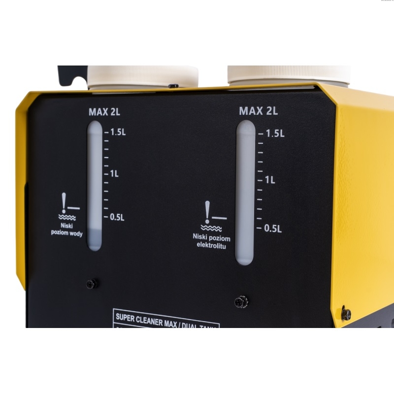 SUPER CLEANER MAX wyposażony jest w dwa niezależne zbiorniki o pojemności 2 litrów każdy, co umożliwia sprawną i wygodną pracę: