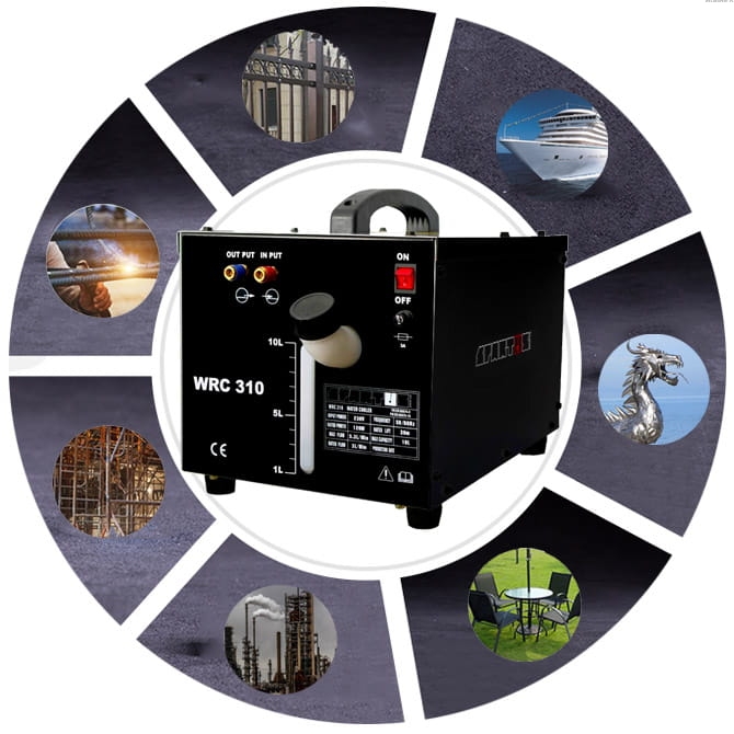 Chłodnica spawalnicza SPARTUS WRC310 jest przeznaczona do chłodzenia cieczą uchwytów spawalniczych MIG/MAG, TIG oraz podzespołów w urządzeniach spawalniczych. Zastosowanie na wejściu i wyjściu szybkozłącza typ 21 umożliwia łatwe i szybkie podłączenie jej do większości uchwytów spawalniczych. Zastosowanie chłodnicy do urządzeń spawalniczych z uchwytem chłodzonych cieczą obniża koszty eksploatacji.