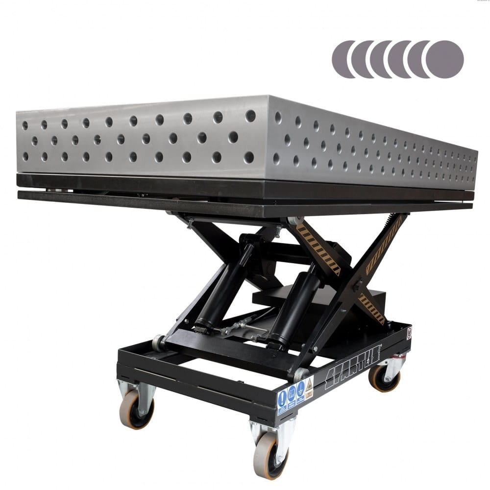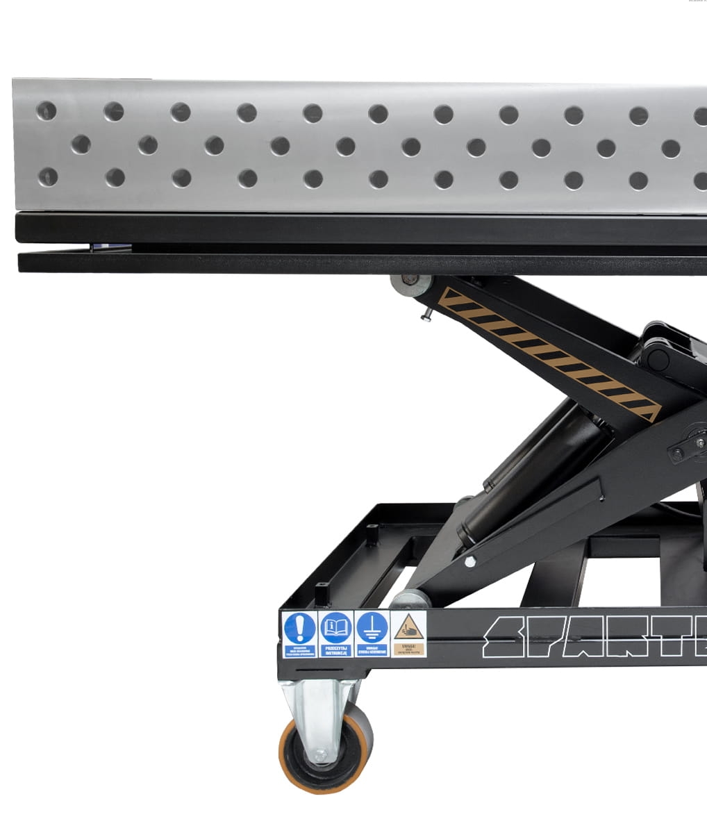 Zastosowanie mobilnego podnośnika w stołach spawalniczych SPARTUS® niesie ze sobą wiele korzyści przekładających się na efektywniejszą i bardziej komfortową pracę.