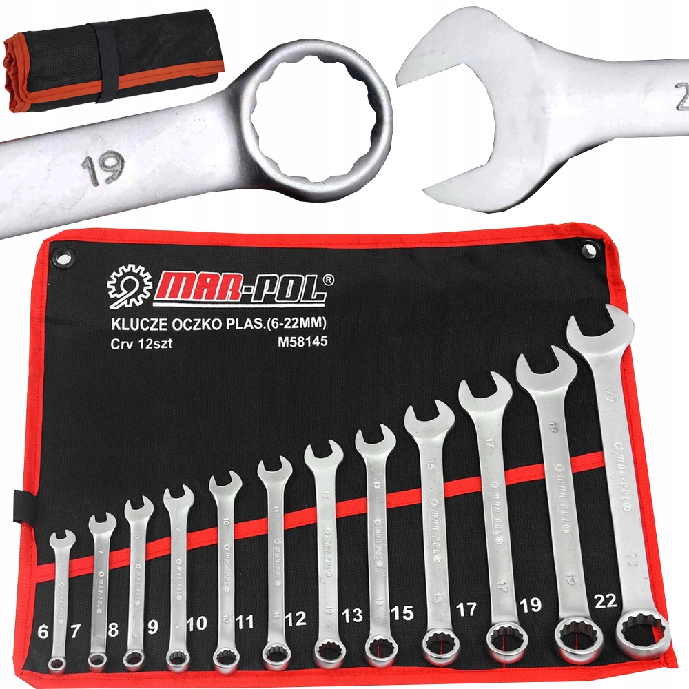 ☀️Zestaw kluczy płasko-oczkowych MARPOL zawiera klucze w popularnych rozmiarach, wykonane zgodnie z normą DIN 3113.☀️