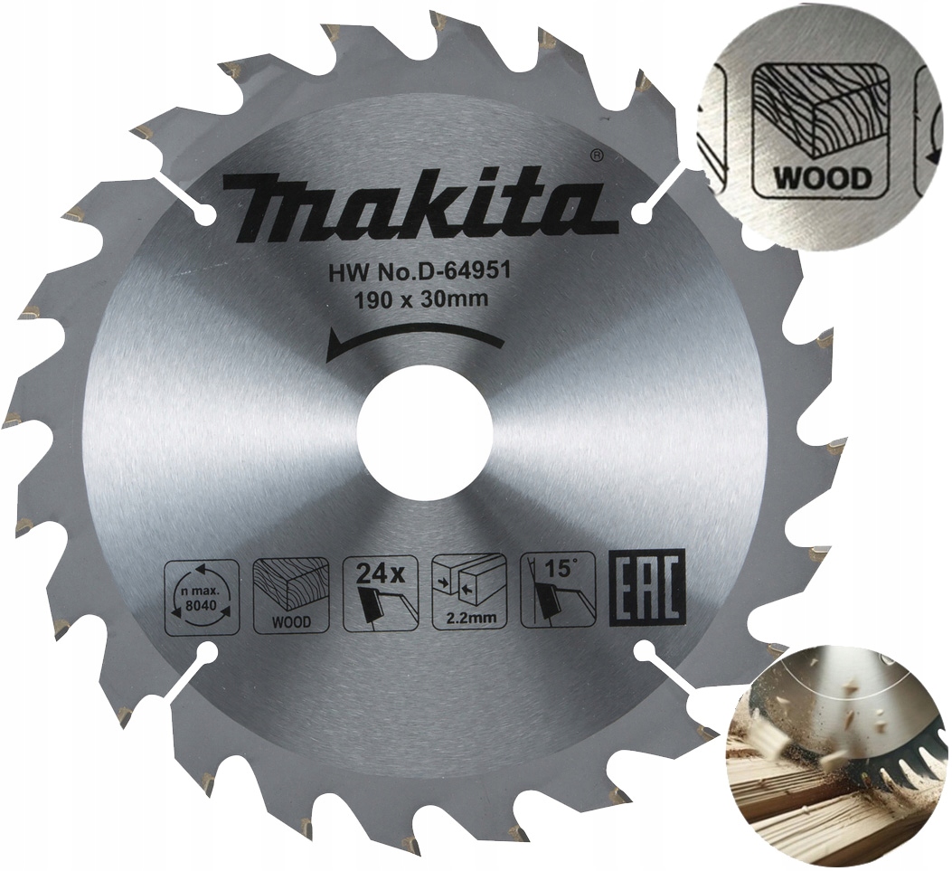 ✅ MAKITA D-64951 – TARCZA TNĄCA 190x30 mm, 24 ZĘBÓW DO DREWNA