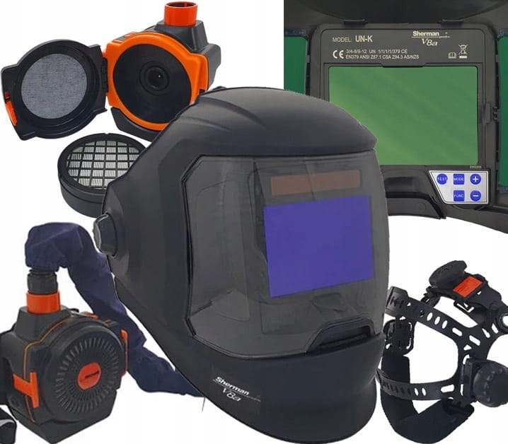 ⭐SAMOŚCIEMNIAJĄCA PRZYŁBICA SPAWALNICZA SHERMAN-PROFI V8a Z SYSTEMEM NAWIEWU PAPR ⭐