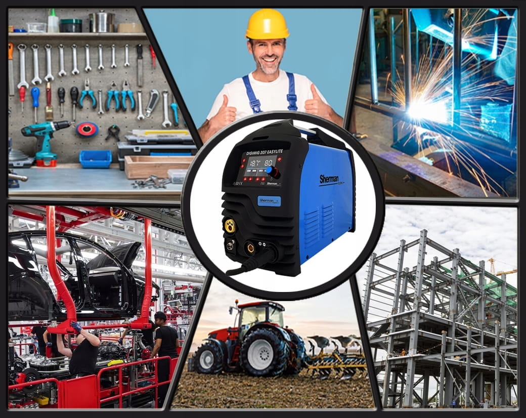 Migomat firmy SHERMAN jest urządzeniem o szerokim wachlarzu zastosowań, zaprojektowane, jako inwertorowe źródło prądu umożliwiające spawanie drutem topliwym w osłonie gazowej MIG/MAG lub FCAW drut samo-osłonowy (po zmianie biegunowości), spawanie elektrodą otulinową MMA, a także metodą TIG Lift