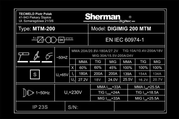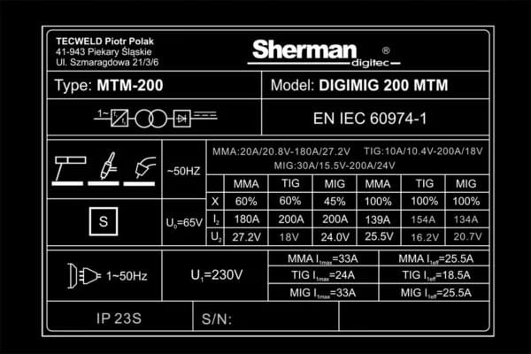 - Spawarka SHERMAN DIGIMIG 200 MTM - 1szt.
