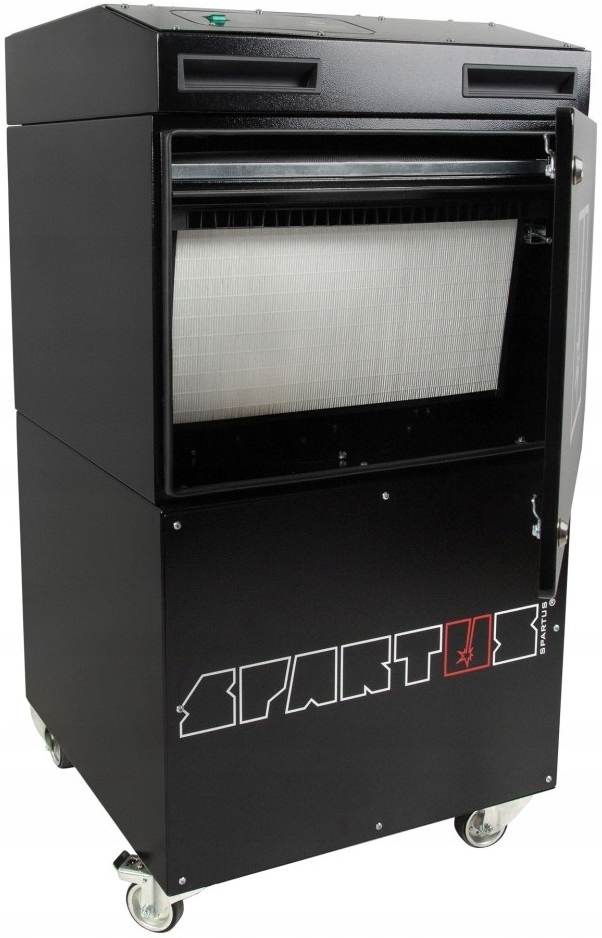 Mobilny odciąg dymów spawalniczych SPARTUS® AirMaster to zaawansowany system filtracji, zaprojektowany do skutecznego usuwania pyłów i dymów powstających podczas spawania. Dzięki wykorzystaniu dwóch ramion odciągowych Vortex Eco urządzenie umożliwia efektywne eliminowanie zanieczyszczeń z dwóch stanowisk. Komponenty filtra AirMaster Duo obejmują metalowy pre-filtr oraz modułowy wkład główny, który można łatwo wymieniać.
