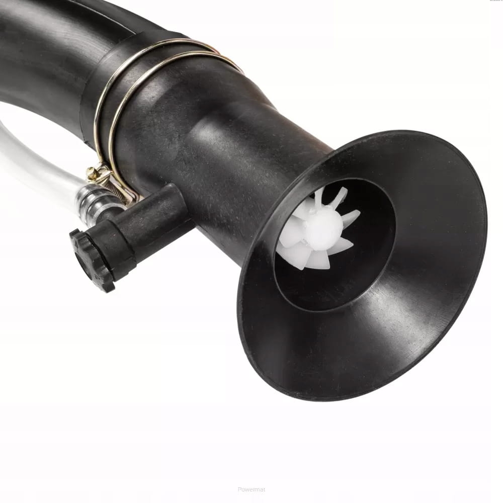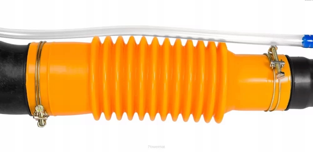 Złącze elastyczne o dużej średnicy zapewnia odpowiedni przepływ do opylania na dużej powierzchni. Złącze zostało wykonane z materiału, który jest odporny na załamania. Taki materiał wydłuża żywotność urządzenia.