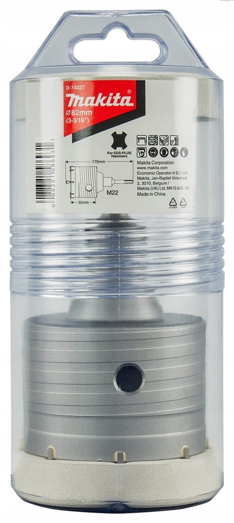 Wiertło koronowe Makita o średnicy 82 mm i długości roboczej 50 mm jest przeznaczone do przewiercania kamienia dzięki zębom z węglików spiekanych. Produkt jest dostarczany jako komplet, który zawiera: