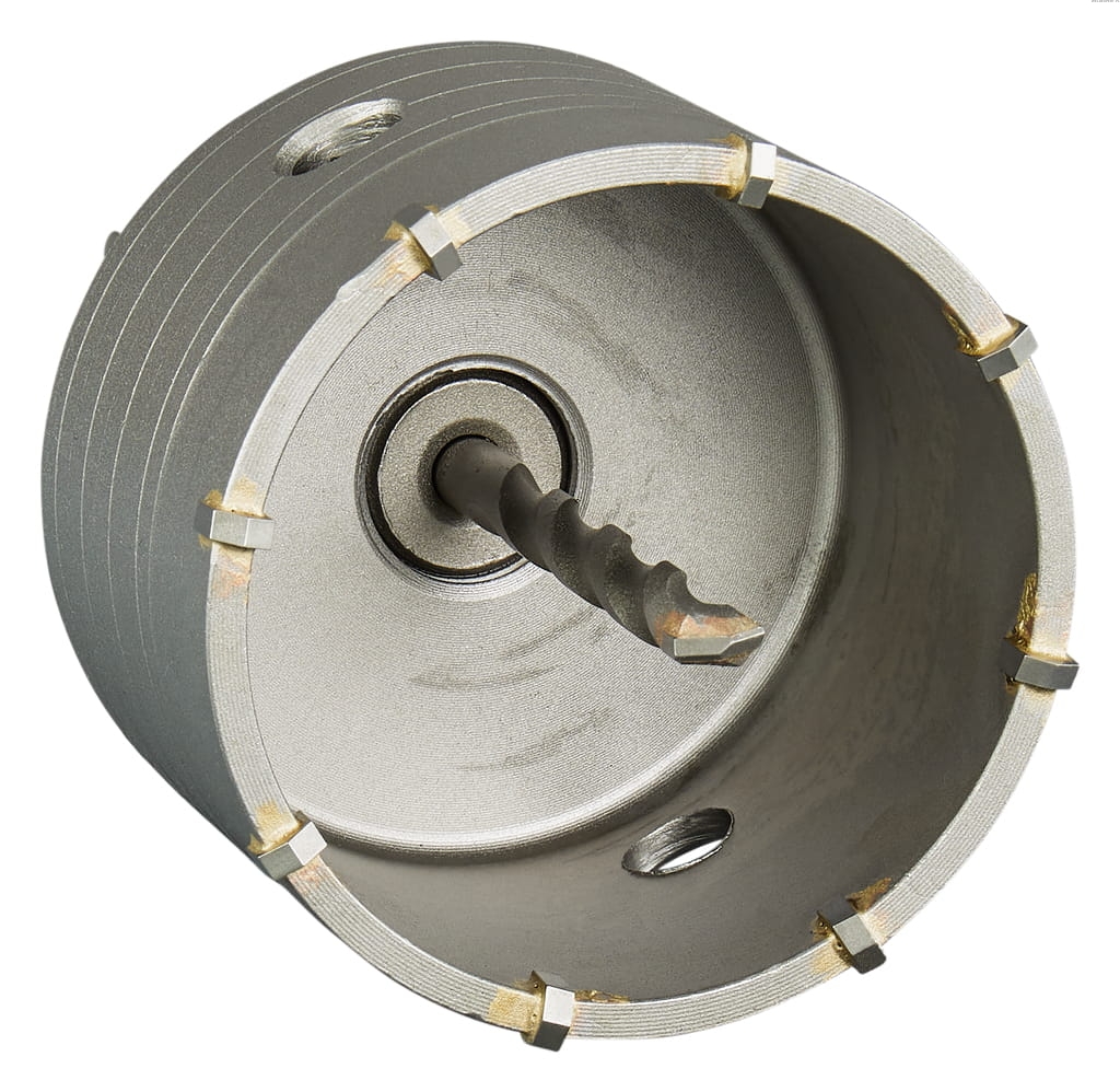 - Kompletne wyposażenie: Zestaw zawiera uchwyt wiertła koronowego 110 mm M22 oraz wiertło centrujące, które ułatwia precyzyjne rozpoczęcie wiercenia.