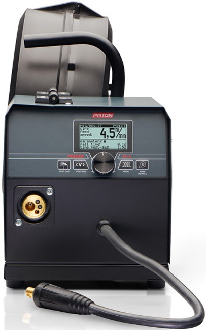 ➡️ Podajnik posiada własne źródło zasilające silnik, zawór doprowadzający gaz ochronny oraz układ sterowania. Cechą charakterystyczną podajników PATON™ jest bardzo potężny, wysokiej jakości uszczelniony metalowy mechanizm podawania drutu, a także scalone złącze KZ-2 typu “EURO”, które stało się standardem na świecie, pozwalając użytkownikowi w przyszłości na zmianę uchwytu według własnego uznania. W urządzeniu zainstalowany jest zawór doprowadzający gaz ochronny.