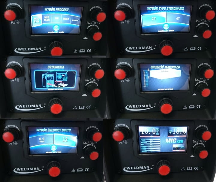 ✅ Spawanie synergiczne 5 programów: FE (stal węglowa), SS (stal nierdzewna), AL. (aluminium), FCAW-S (drut samoosłonowy), FCAW-G (drut proszkowy).