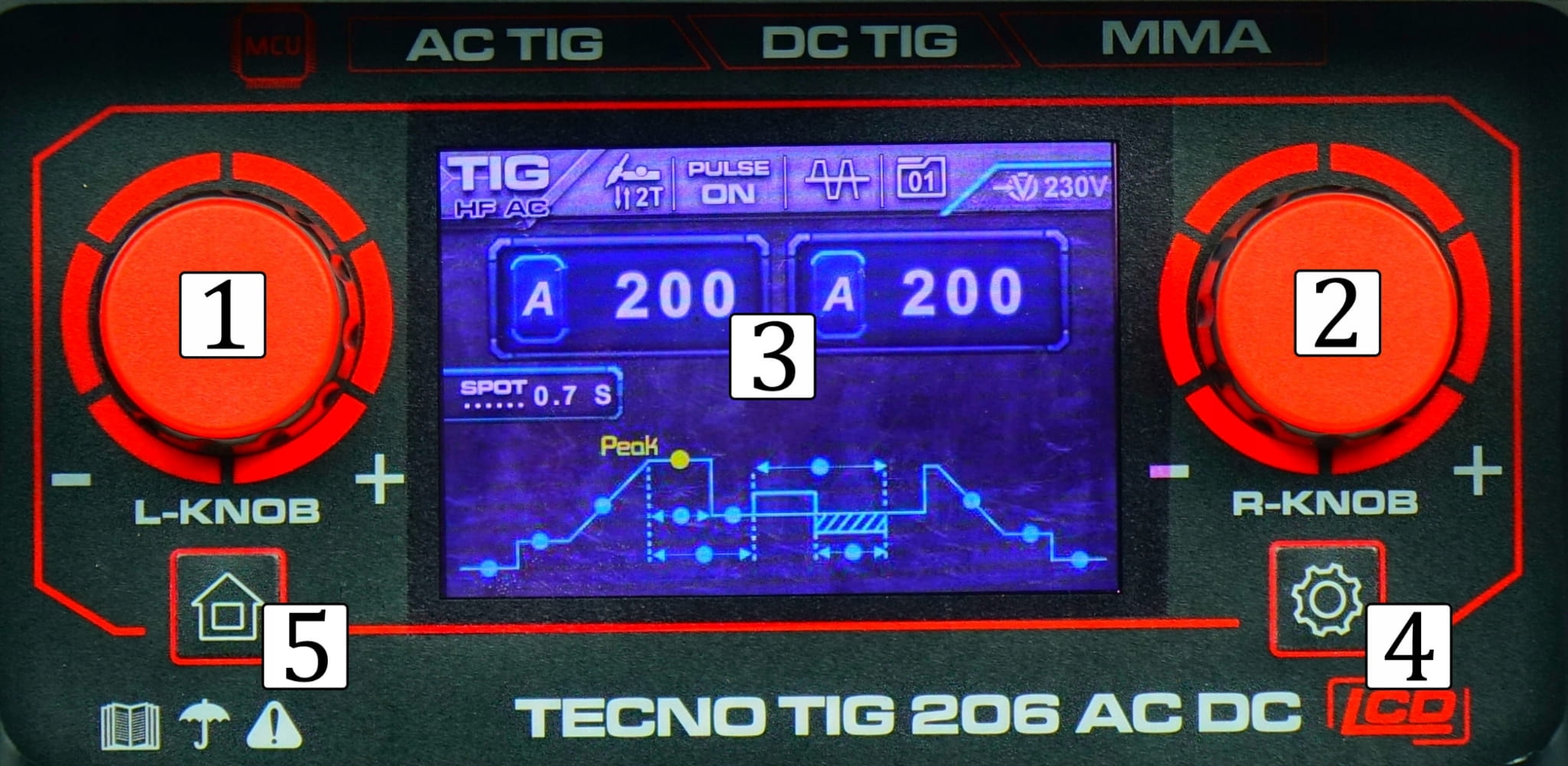 IDEAL TECNO TIG 206 AC/DC LCD posiada czytelny i łatwy w obsłudze panel funkcyjny, który posiada m.in.: