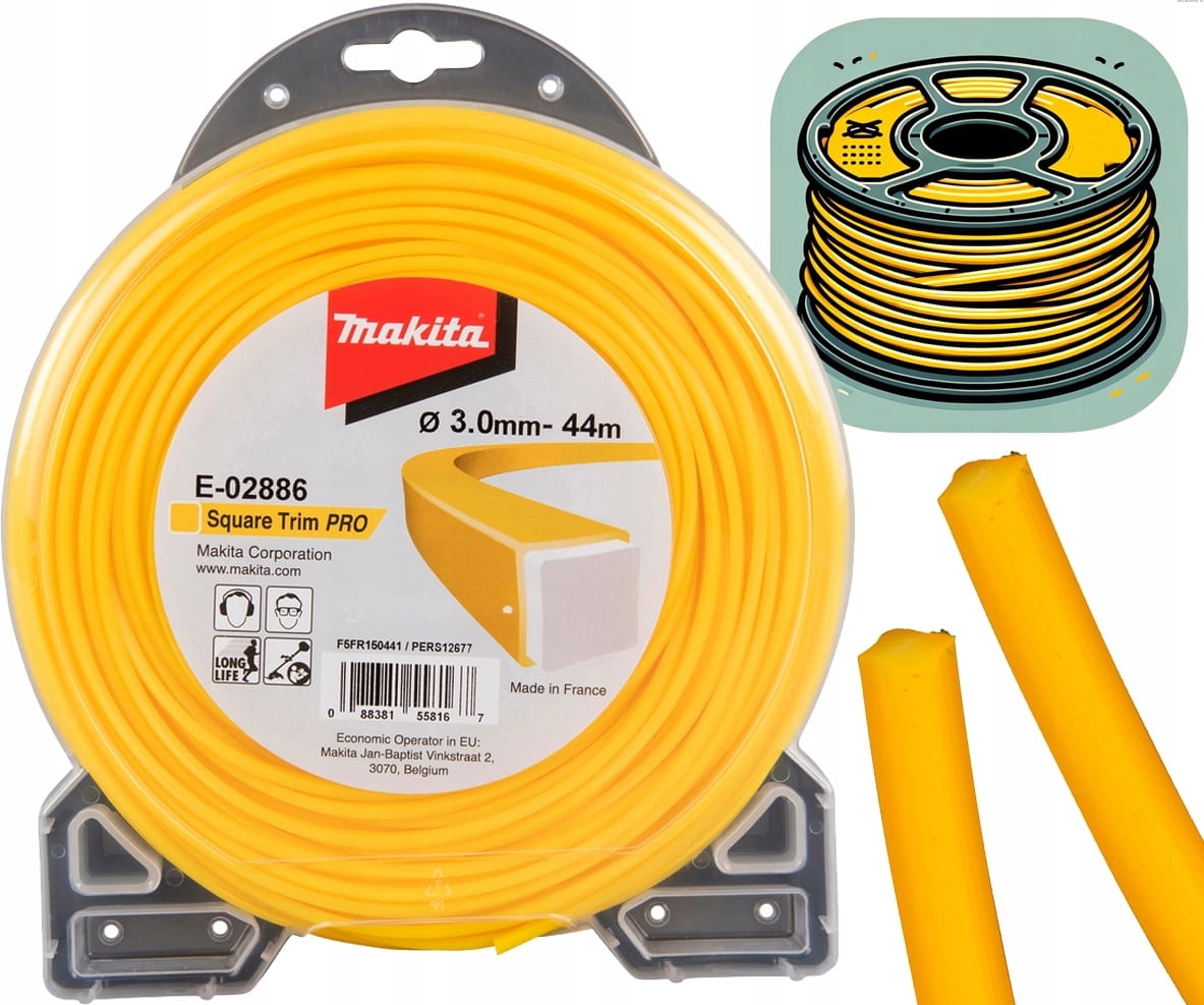 PROFESJONALNA NYLONOWA ŻYŁKA KWADRATOWA MAKITA 3,0mm 44m E-02886 TRWAŁA