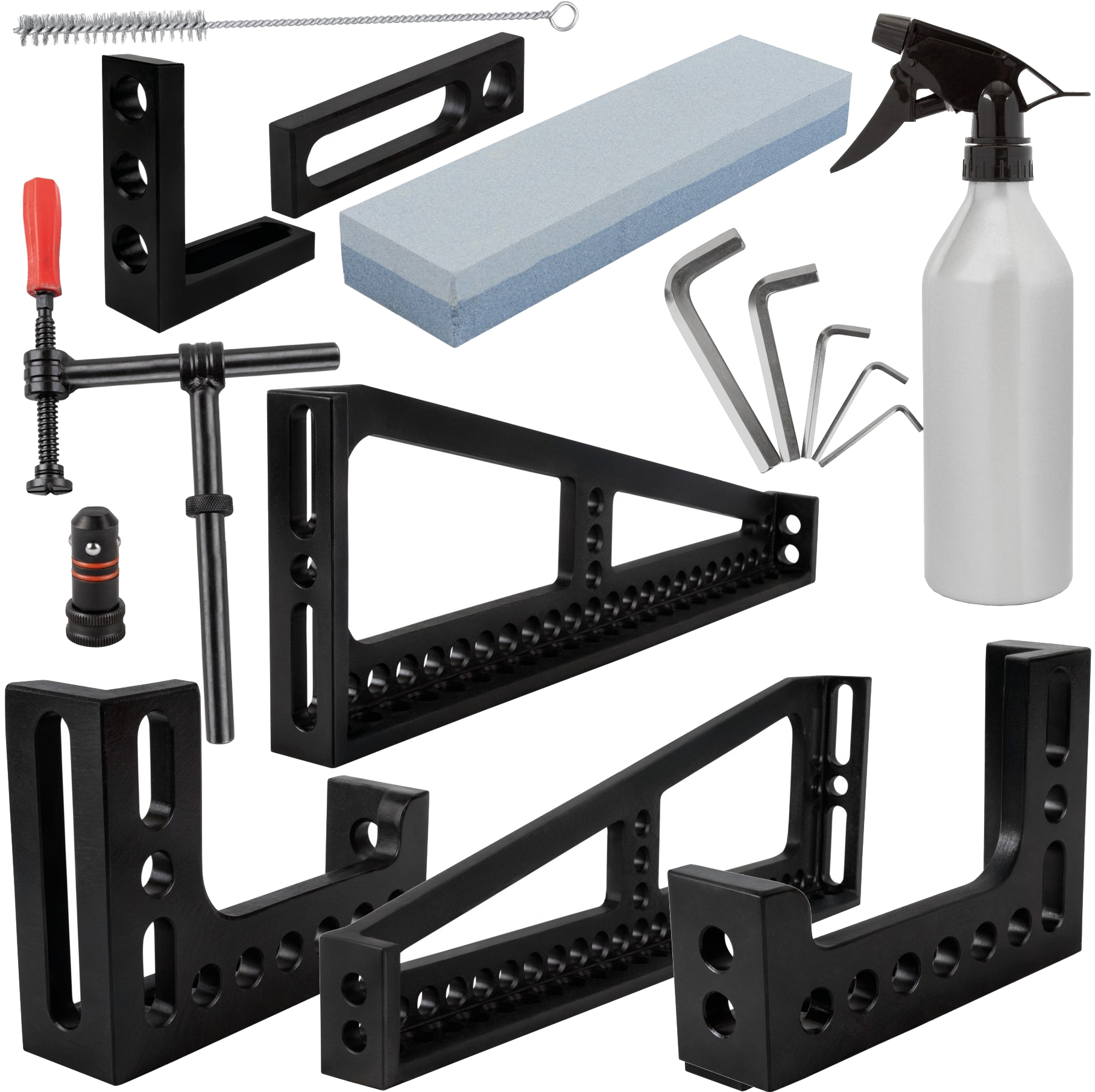 W skład zestawu wchodzą starannie dobrane akcesoria, które umożliwiają wygodne i precyzyjne mocowanie elementów na stołach spawalniczych w systemie D16.