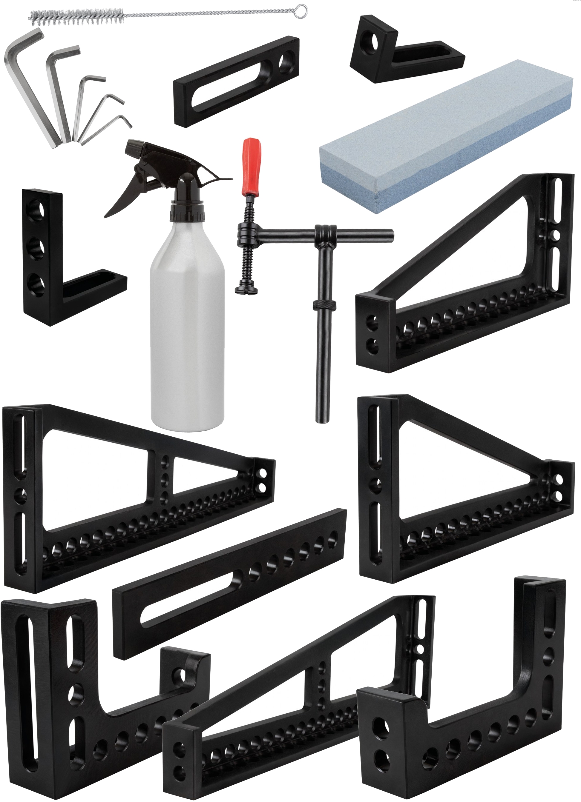 Zestaw zawiera wysokiej jakości kątowniki, elementy mocujące oraz praktyczne narzędzia pomocnicze, które ułatwiają montaż, regulację i konserwację.