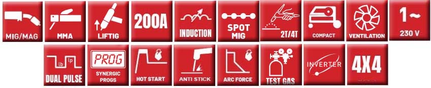 - Zakres regulacji prądu spawania: 20 - 200 A