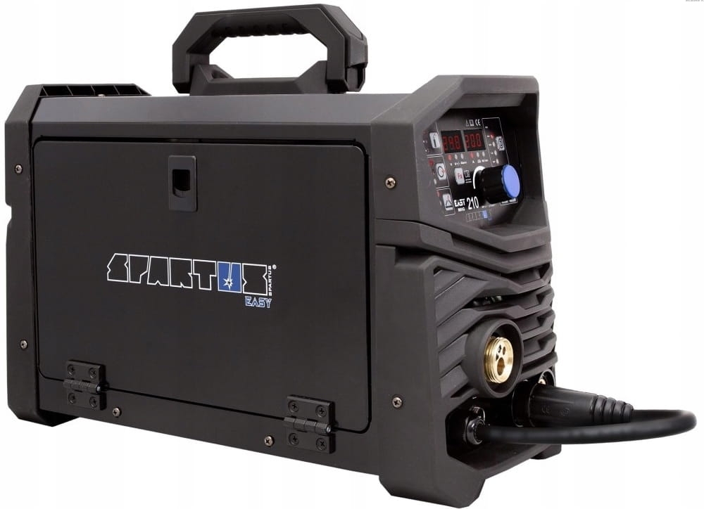 SPARTUS® EasyMIG 210 to nowoczesny, inwertorowy półautomat spawalniczy, skonstruowany w oparciu o tranzystory IGBT. Posiada funkcję spawania w osłonie gazów obojętnych i aktywnych (MIG/MAG), spawanie elektrodą otuloną (MMA) oraz spawanie TIG Lift z zajarzeniem łuku przez potarcie. Łatwa zmiana biegunowości umożliwia spawanie drutem samoosłonowym bez gazu.