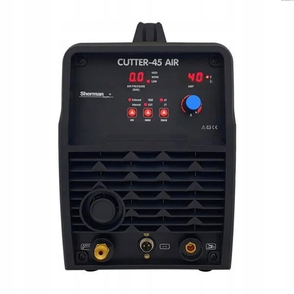 Przecinarka plazmowa CUTTER 45 AIR marki SHERMAN z wbudowanym kompresorem przeznaczona jest do ręcznego cięcia plazmą powietrzną, elementów przewodzących prąd elektryczny, wykonanych ze stali węglowych i stopowych, aluminium i jego stopów, mosiądzu, miedzi.