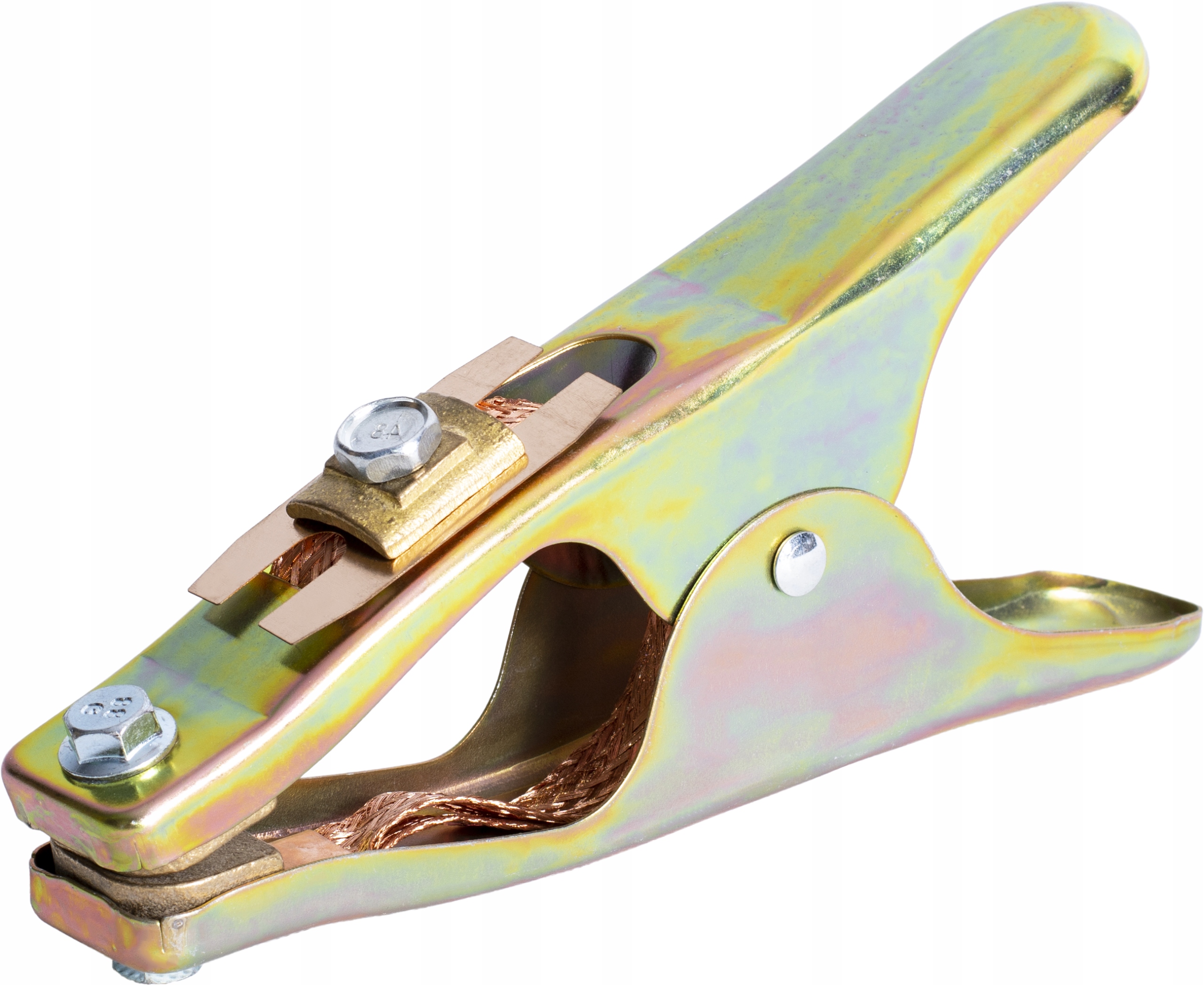 Zacisk kleszczowy, biegunowy o maksymalnej obciążalności prądowej do 500A, stosowany w spawalniczych przewodach masowych.