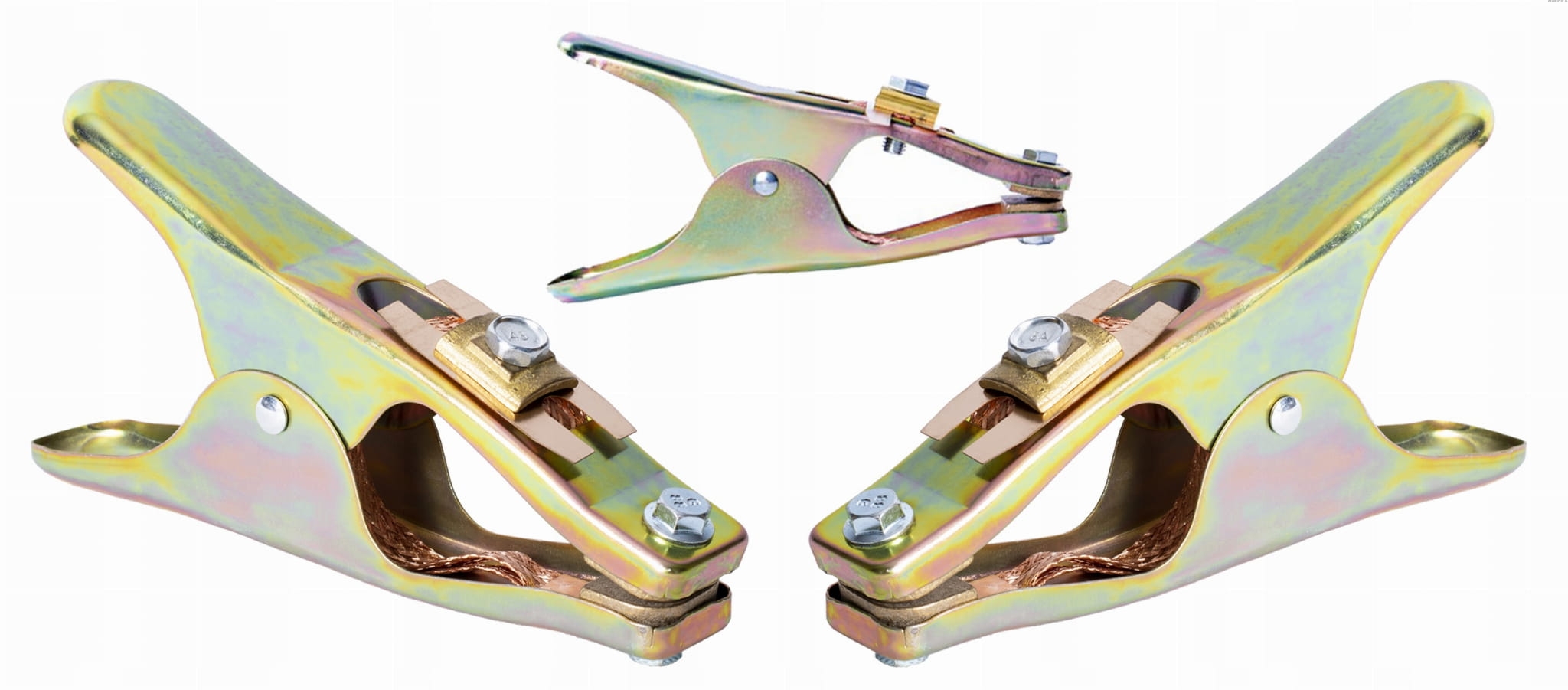 Solidny zacisk masowy służący do wytworzenia obwodu spawania, wykonany z materiałów wysokiej jakości.