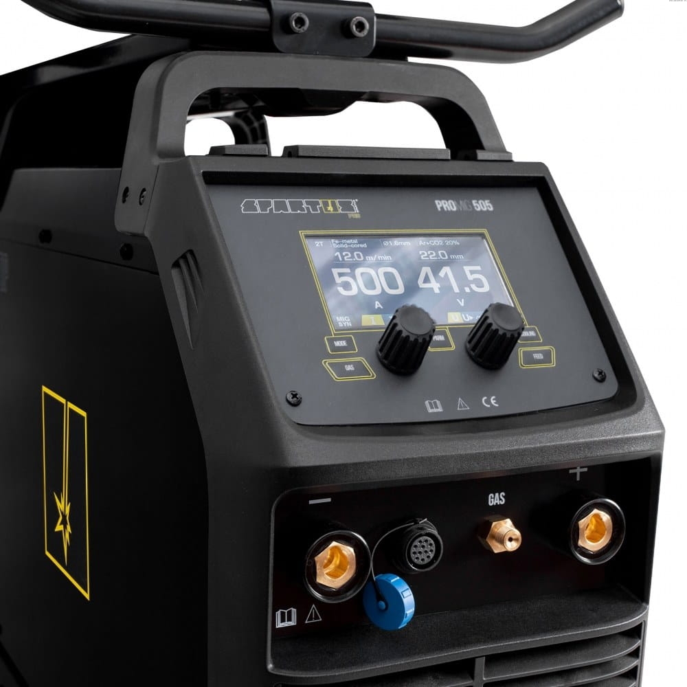 SPARTUS® ProMIG 505 to wysokiej klasy, nowoczesna spawarka inwertorowa, skonstruowana w oparciu o zaawansowaną technologię PWM i profesjonalne tranzystory IGBT. Umożliwia spawanie MIG / TIG DC oraz MMA, prądem o natężeniu do 500A. Zasilana jest z sieci trójfazowej 400V. Urządzenie daje szeroki wachlarz możliwości dla wyżej wymienionych metod łączenia metali.
