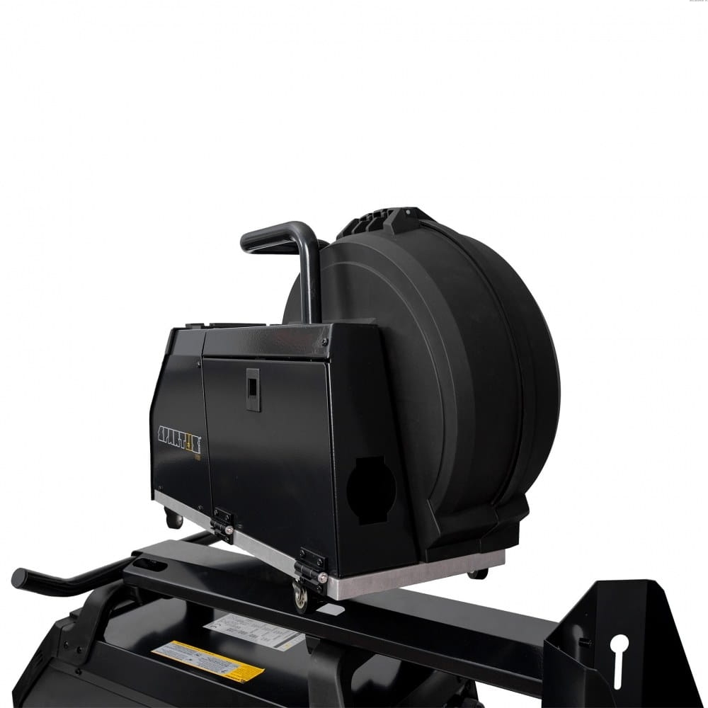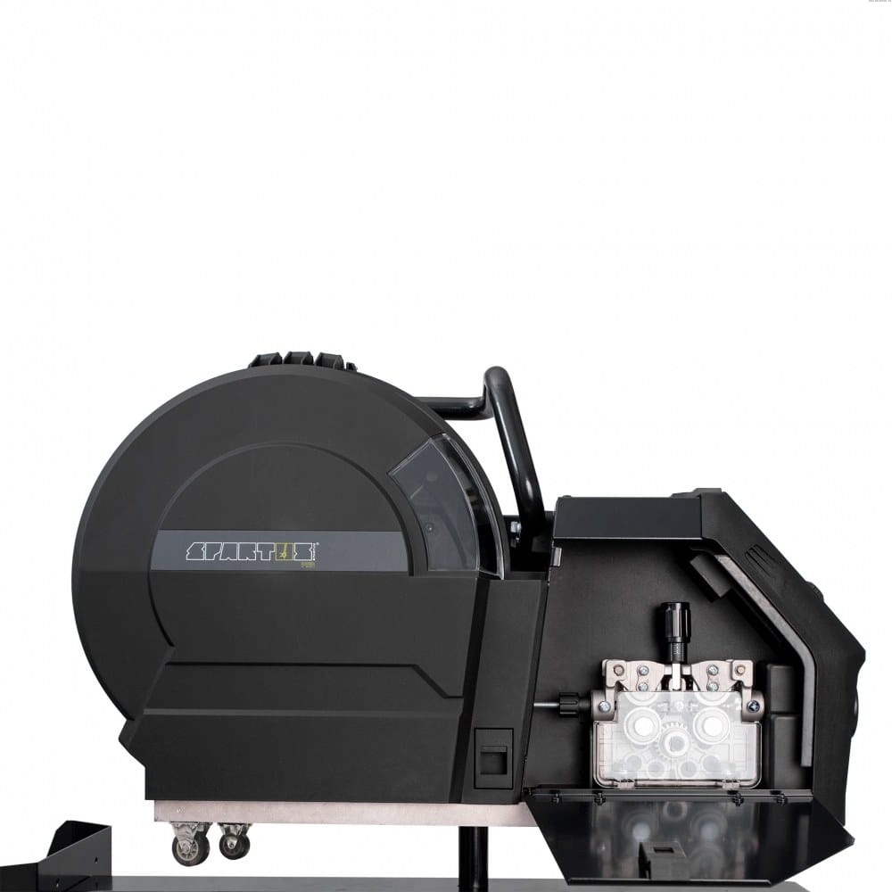 Wydzielony wysokiej klasy czterorolkowy podajnik, zapewnia stabilne podawanie drutu. Istotną zaletą jest również możliwość spawania uchwytem Spool Gun.
