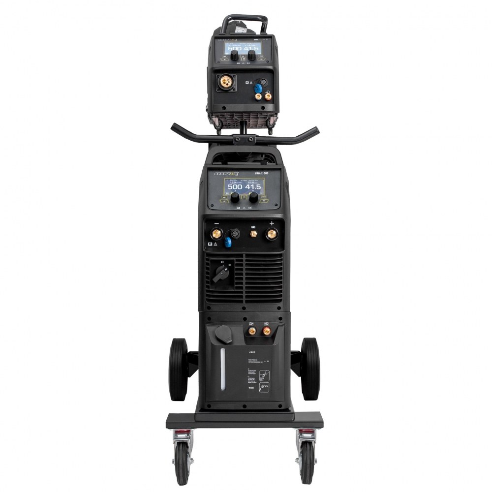 Pakiet zawiera: • ProMIG 505 • Wydzielony podajnik drutu 4R • Chłodnica • Zestaw jezdny • płyn chłodzący 5l • Przewód zespolony 5m • Uchwyt SPARTUS® MIG SPP 501 3m • Uchwyt elektrodowy 3m • Przewód masowy z zaciskiem kleszczowo-śrubowym 3m • Instrukcja obsługi