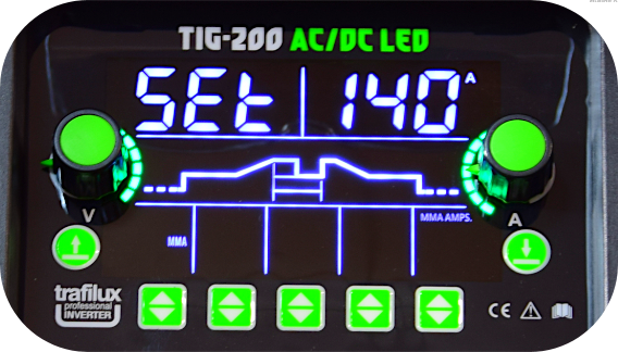 ➡️ TIG AC/DC - Spawanie elektrodą nietopliwą w osłonie gazu obojętnego z możliwością ustalania zajarzania łuku TIG HF i TIG LIFT prądem stałym (DC) oraz zmiennym (AC) a także w trybach: