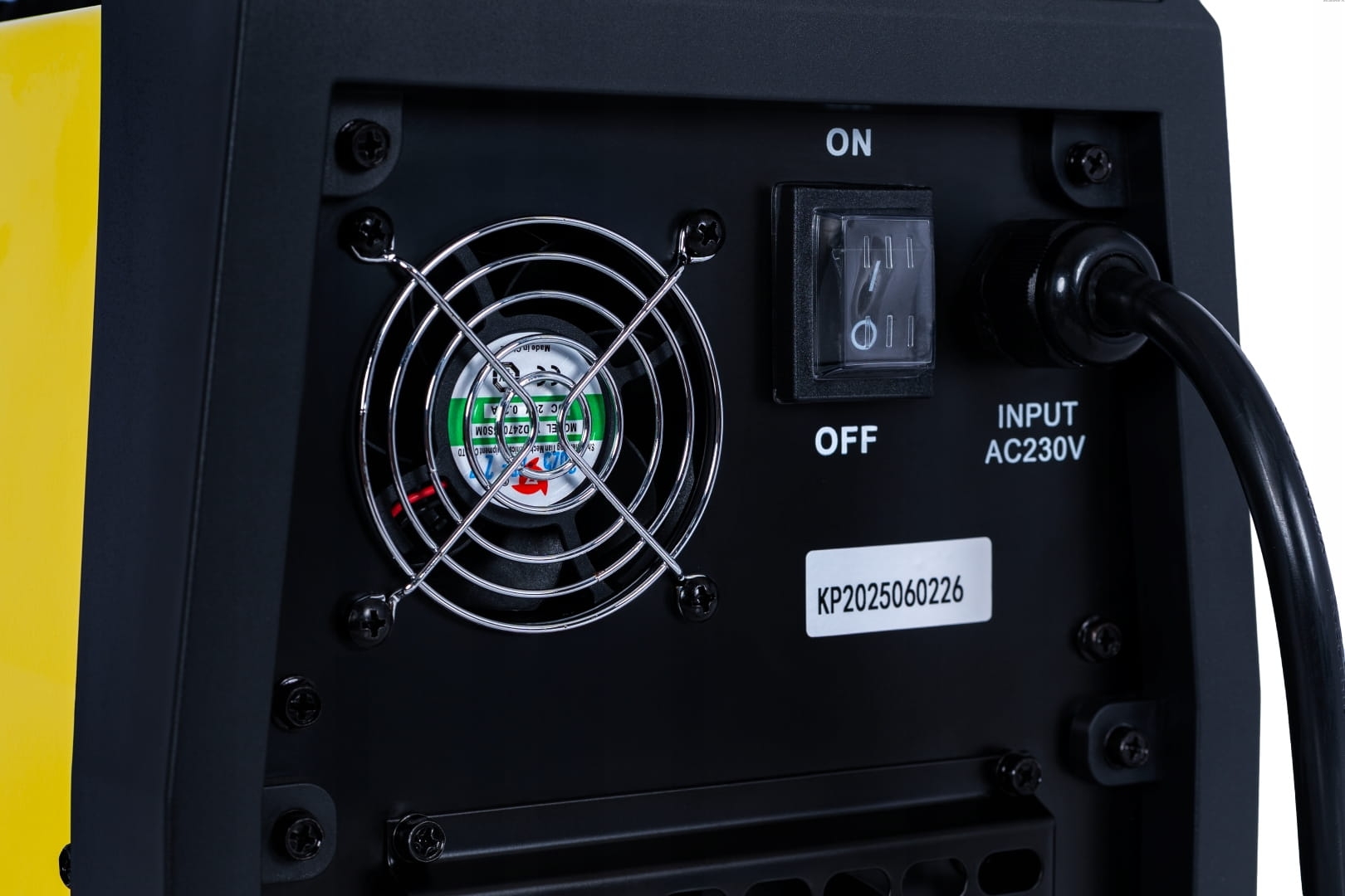to profesjonalna spawarka inwertorowa w nowoczesnym wydaniu. Umożliwia spawanie prądem o natężeniu do 200A. Zasilana jest z sieci jednofazowej 230V. Spawarka posiada: