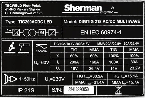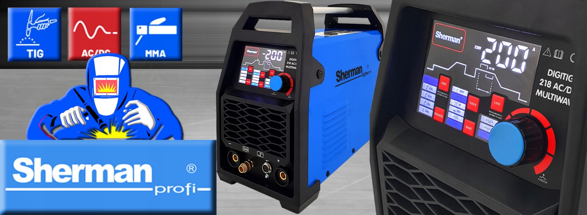 ⭐ SPAWARKA SHERMAN DIGITIG 218 AC/DC MULTIWAVE - NOWOCZESNY I WYDAJNY TIG AC/DC Z PULSEM ⭐