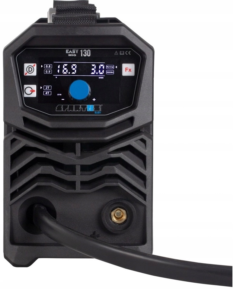 Spawarka SPARTUS EasyMIG 130 posiada czytelny i łatwy w obsłudze panel funkcyjny, który posiada m.in.: