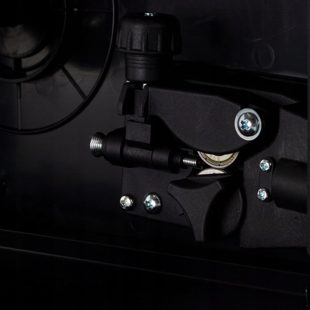 Podajnik posiada pokrętło szybkiej wymiany drutu jak i rolki podającej drut.