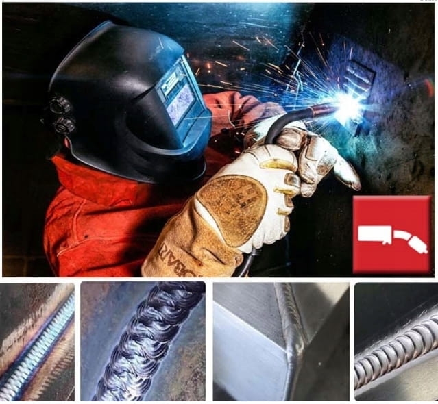 ➡️ FLUX / FCAW - spawanie drutem samoosłonowym. Jest to podobny proces spawania jak MIG/MAG jednak nie wymaga posiadania butli z gazem. Na drucie znajduje się cienka warstwa proszku, który w momencie tworzenia łuku wytwarza gaz osłaniając obszar roboczy.