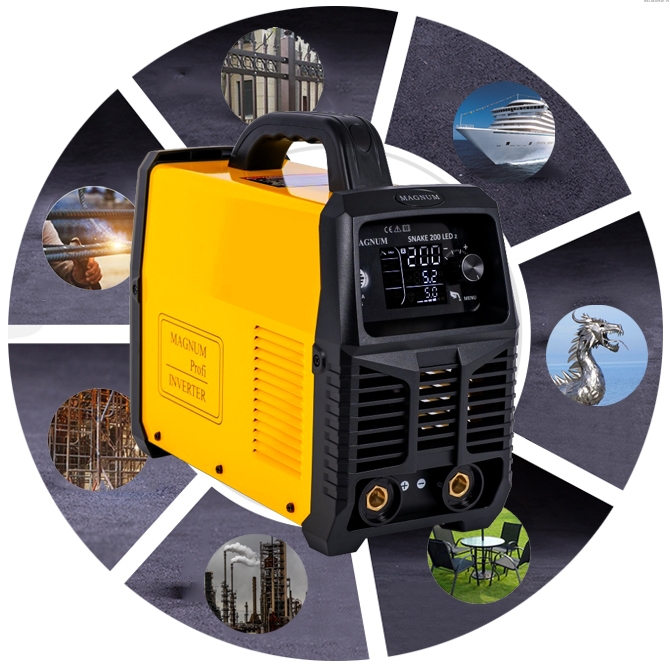 MAGNUM SNAKE 200 LED V2 - To spawarka wykorzystująca najbardziej zaawansowana technologię inwertorową. Spawarka posiada zasilanie na 230V, która umożliwia spawanie metodą: