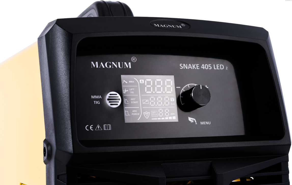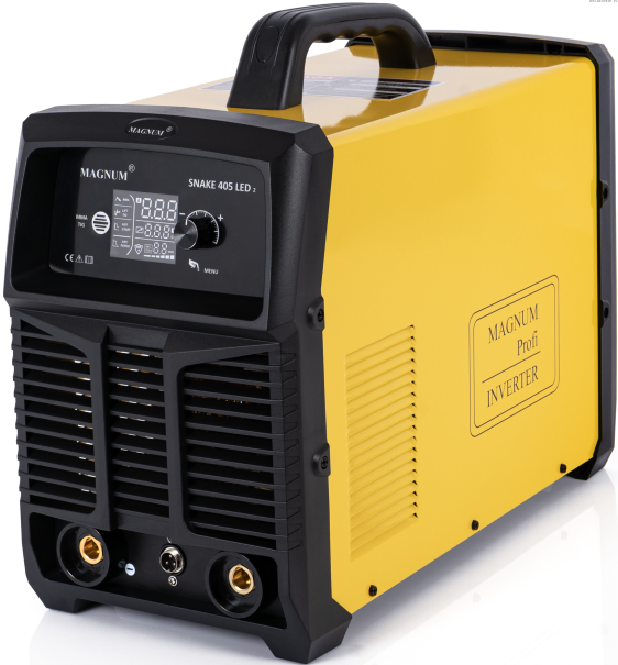 MAGNUM SNAKE 405 LED V2 - To spawarka wykorzystująca najbardziej zaawansowana technologię inwertorową. Spawarka posiada zasilanie na 400V, która umożliwia spawanie metodą:
