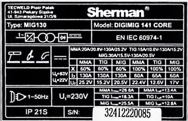 - Spawarka SHERMAN DIGIMIG 141 CORE - 1 szt.