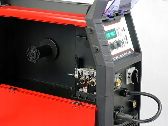 Spawarka została wyposażona w profesjonalny podajnik drutu, który gwarantuje stabilność i ciągłość pracy urządzenia.
