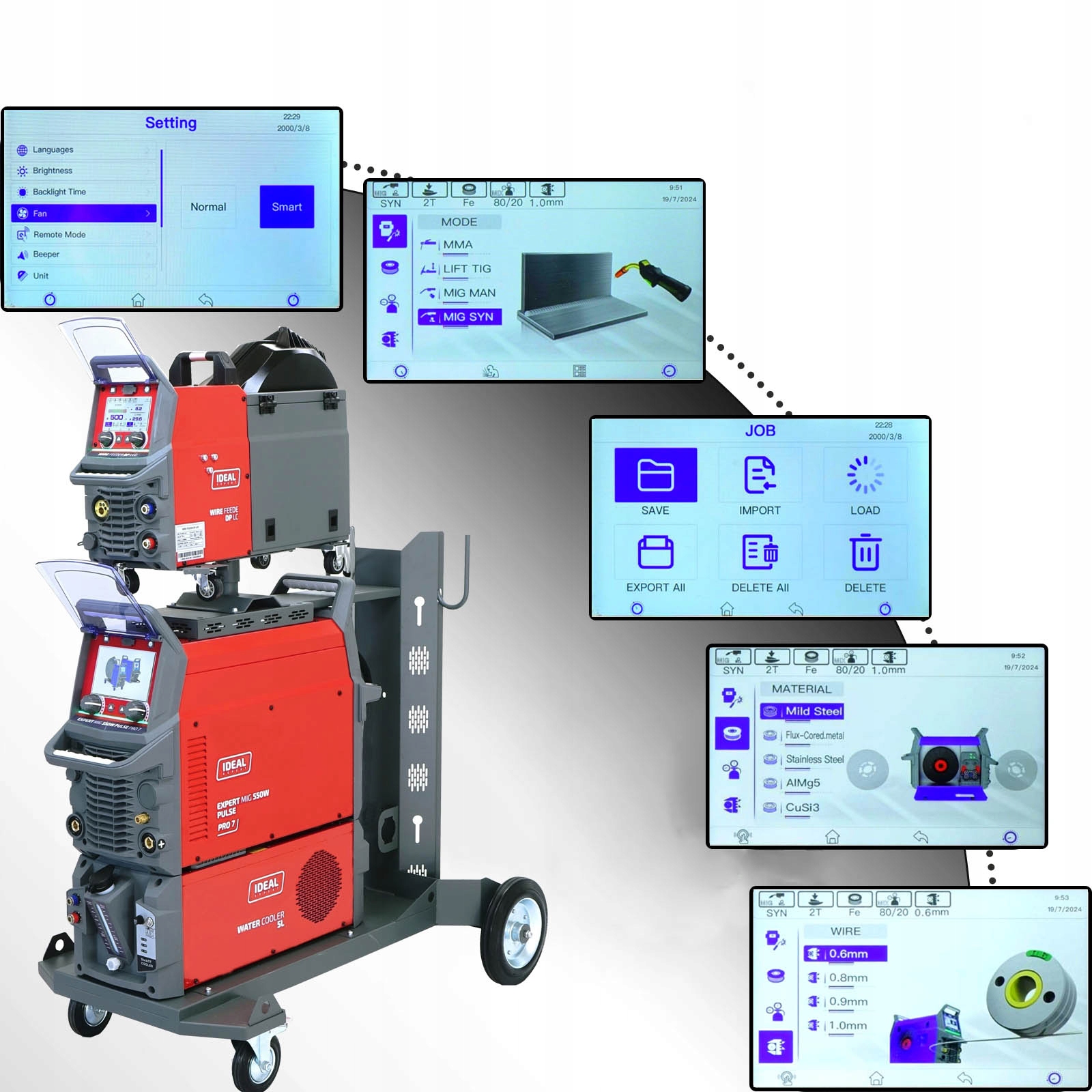 IDEAL EXPERT MIG 550W PULSE Pro7 LCD posiada 7-calowy, dotykowy wyświetlacz LCD co czyni urządzenie bardzo łatwym w użyciu. Wyświetlacz posiada m.in.: