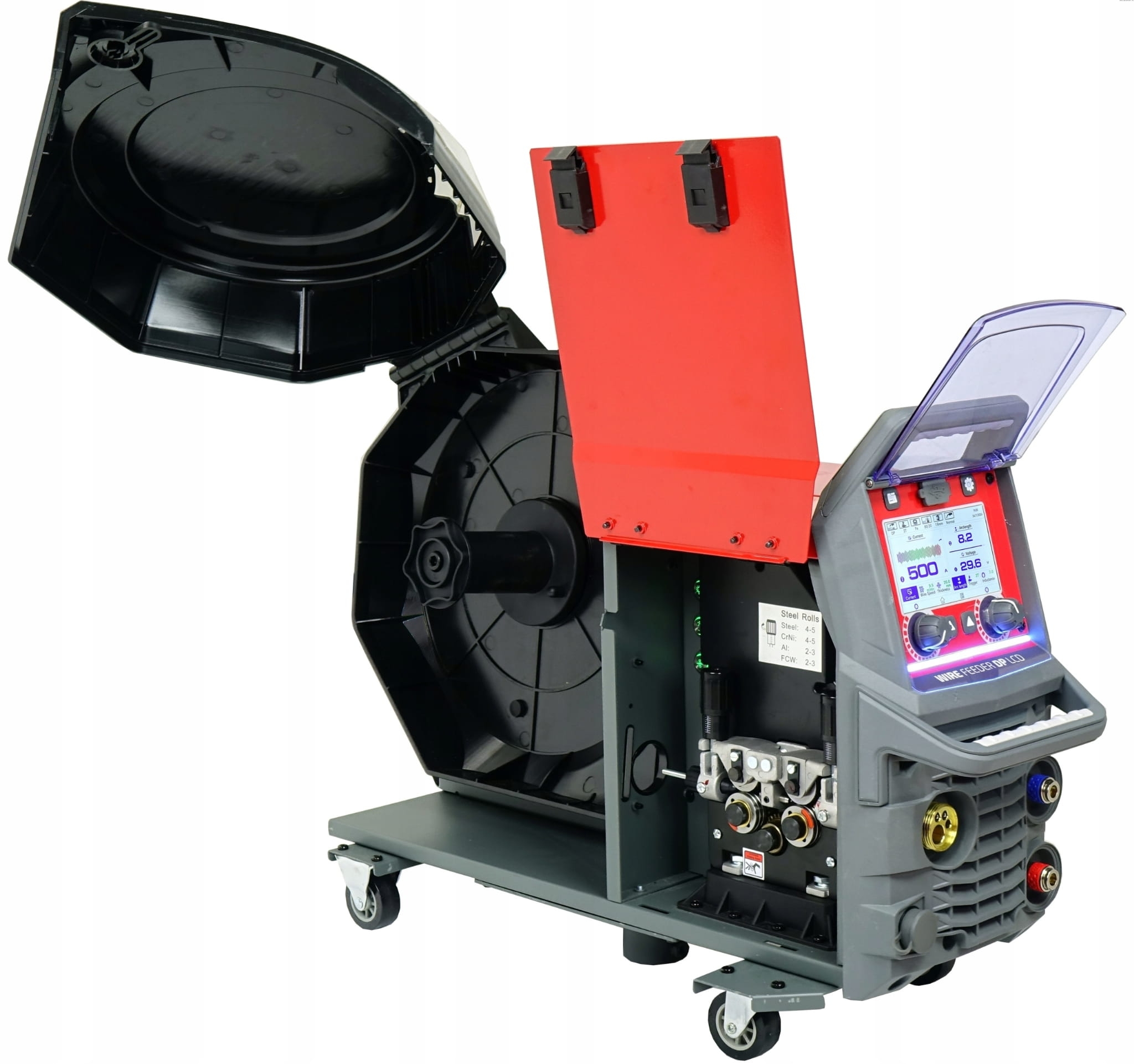 Spawarka została wyposażona w solidny, zewnętrzny 4- rolkowy podajnik drutu, który gwarantuje stabilność i ciągłość pracy urządzenia.