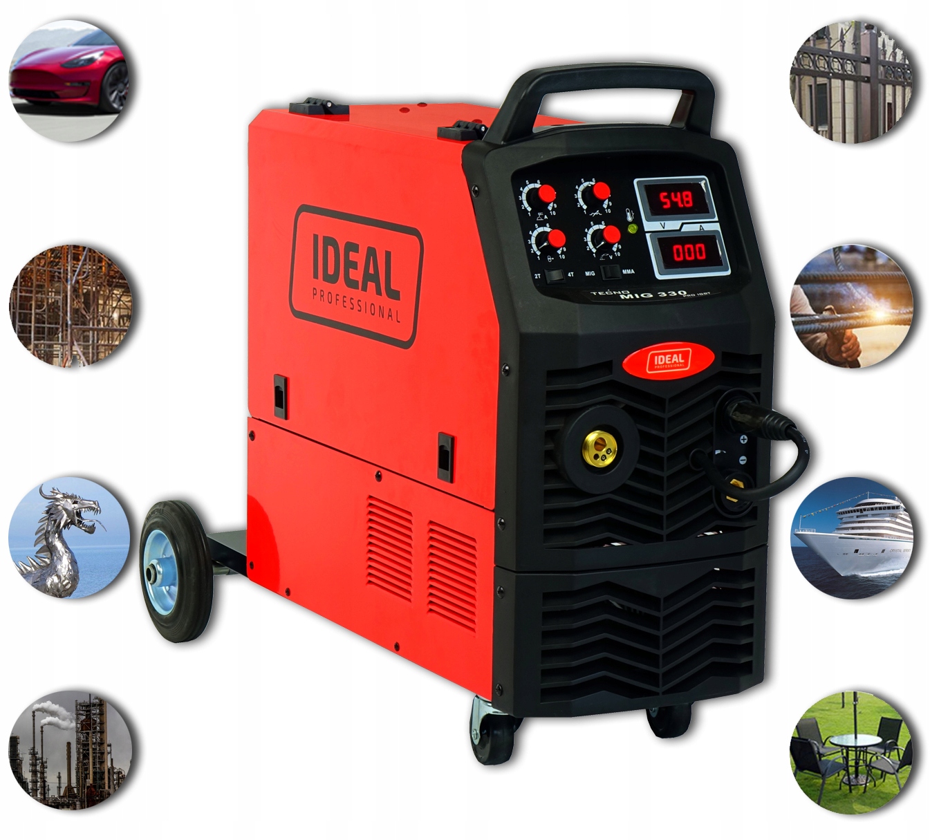 Migomat firmy IDEAL, jest urządzeniem o szerokim wachlarzu zastosowań, zaprojektowane, jako inwertorowe źródło prądu umożliwiające spawanie drutem topliwym w osłonie gazowej MIG/MAG lub FCAW drut samoosłonowy (po zmianie biegunowości), spawanie elektrodą otulinową MMA, a także metodą TIG Lift.