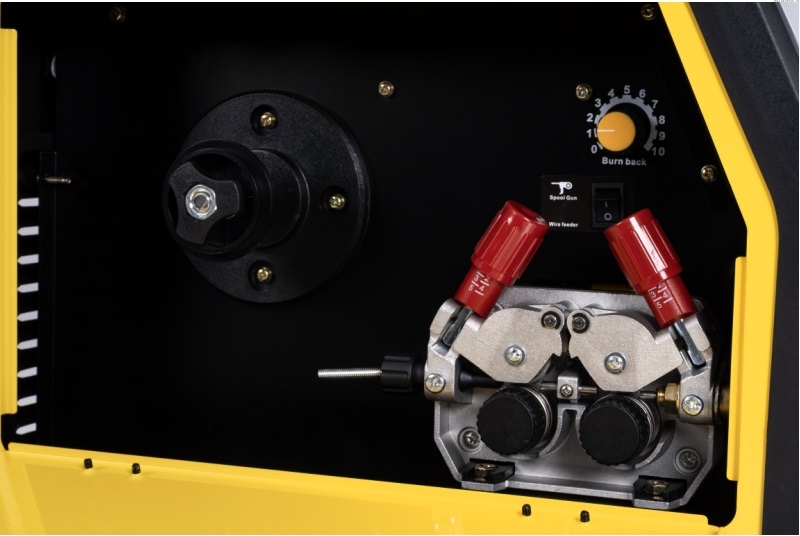 Spawarka została wyposażona w solidny podajnik drutu, który gwarantuje stabilność i ciągłość pracy urządzenia.