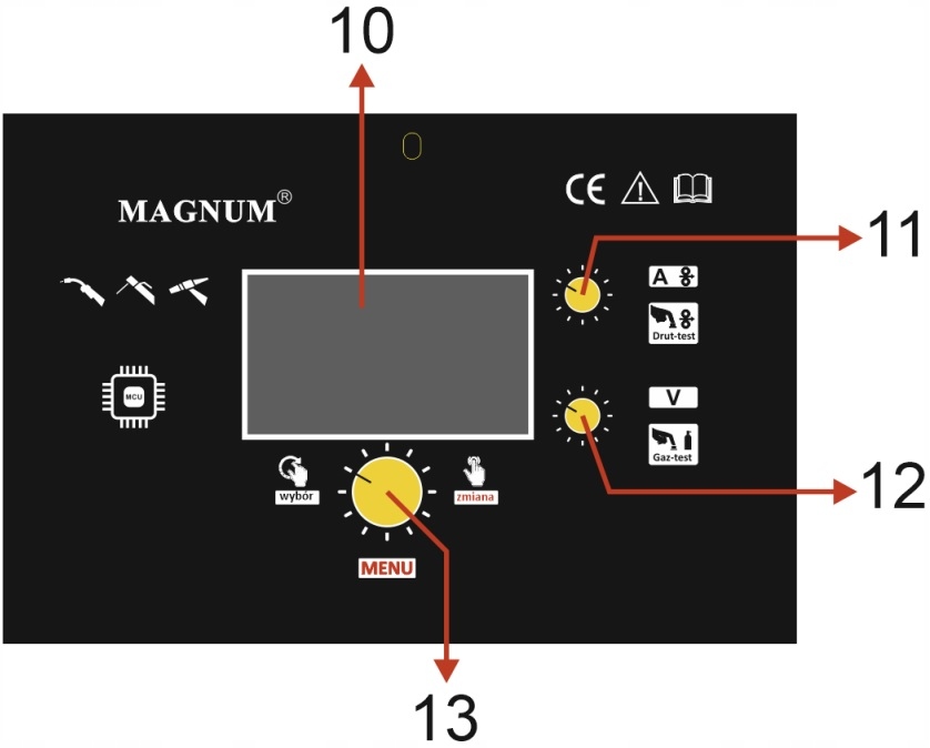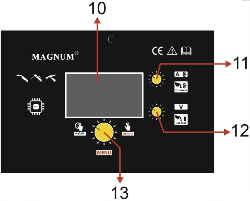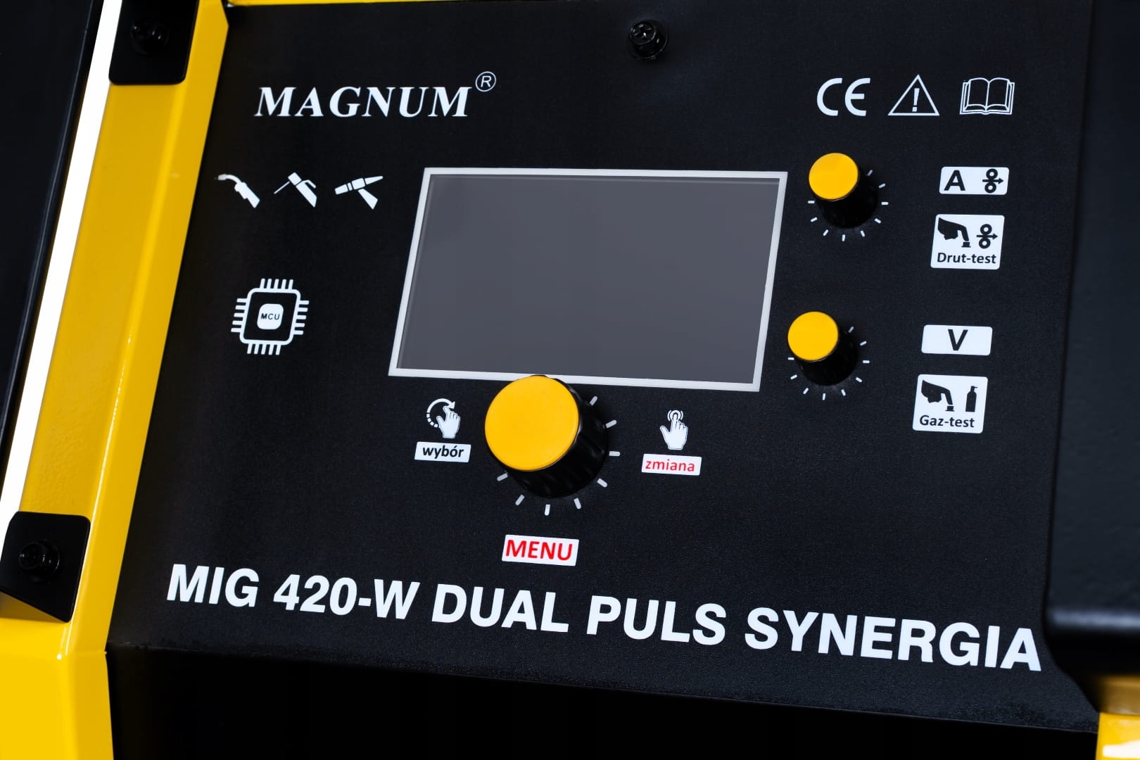 MAGNUM MIG 420-W DUAL PULS SYNERGIA posiada czytelny i łatwy w obsłudze panel funkcyjny, który posiada m.in.:
