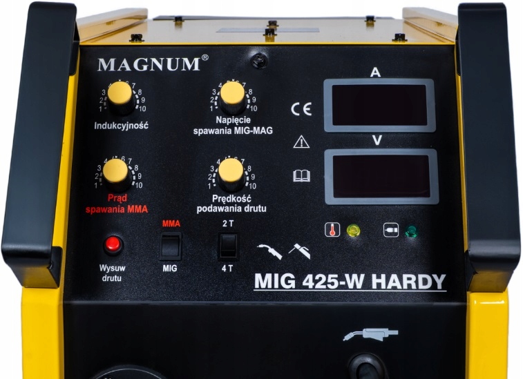 MAGNUM MIG 425-W HARDY posiada czytelny i łatwy w obsłudze panel funkcyjny, który posiada m.in.: