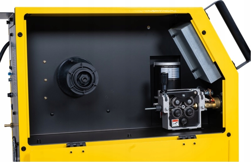 Spawarka została wyposażona w solidny podajnik drutu, który gwarantuje stabilność i ciągłość pracy urządzenia.