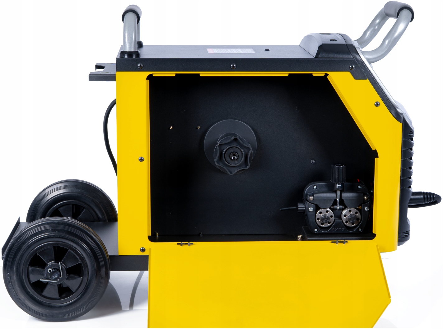 Spawarka została wyposażona w solidny podajnik drutu, który gwarantuje stabilność i ciągłość pracy urządzenia.