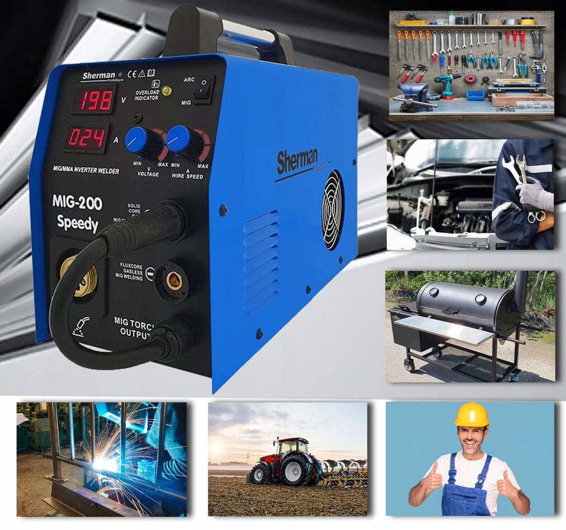 Spawarka MIG 200 SPEEDY została stworzona do prac odbywających się zarówno w warsztacie, jak i w terenie, przy czym jednocześnie należy do grupy produktów, które są skuteczne w swoich działaniach i bardzo wytrzymałe. Półautomat spawalniczy Sherman to jedno z najlepszych rozwiązań pod względem wydajności oraz niezawodności.