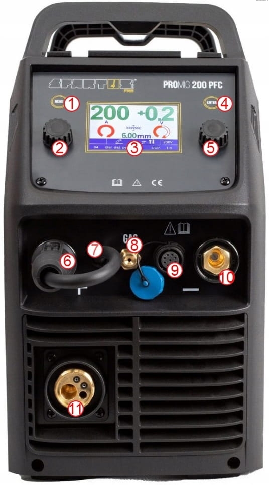 SPARTUS PROMIG 200PFC posiada czytelny i łatwy w obsłudze panel funkcyjny, który posiada m.in.: