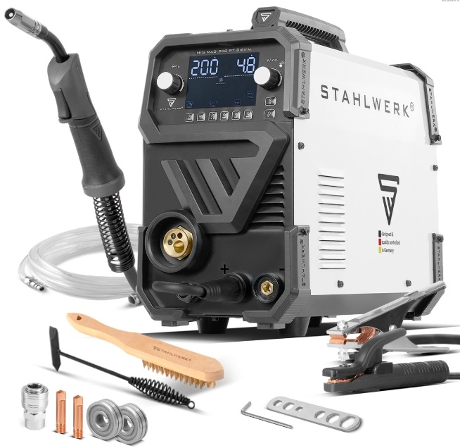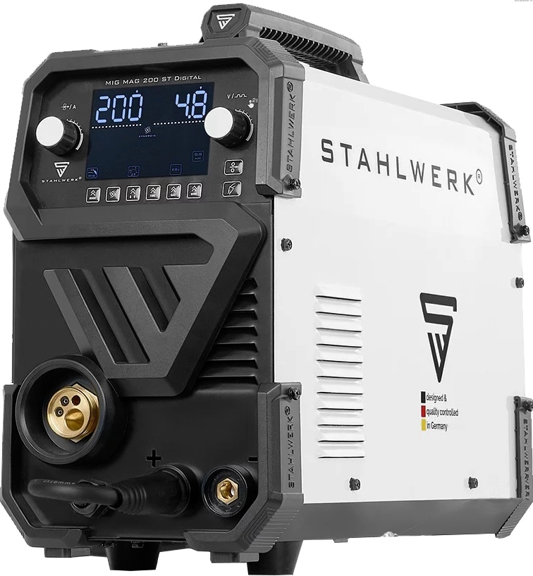 STAHLWERK MIG MAG 200 ST jest to profesjonalny, zaawansowany technologicznie półautomat spawalniczy przeznaczony do spawania metodami: